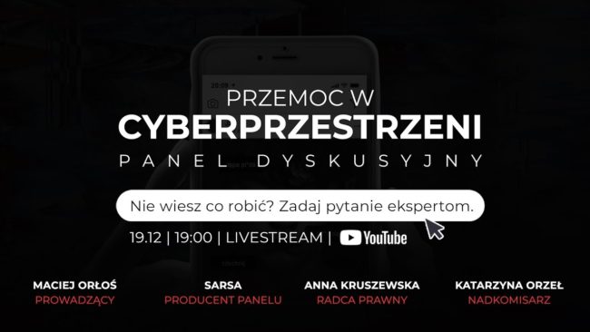 Webinar Facebook – Przemoc w Cyberprzestrzeni Klient: SARSA Termin: 19 grudnia 2019 Technika: Mobilny zestaw realizacyjny Kamery: 3 szt. SONY PMW-EX3 Komunikacja: Hytera TC620 Grafika: CasparCG Streaming: LiveU Solo + Transmisja na Facebook